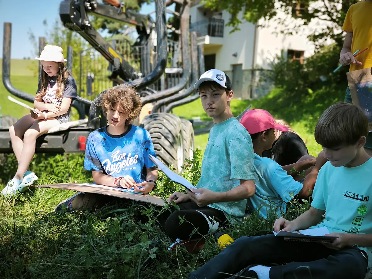 Мы специально нашли такое место, чтобы на нашей территории было спокойно, уютно и комфортно каждому участнику программы. Территория не огорожена забором, а имеет естественные границы. Лес, спуск к ручью и плато вершины холма.